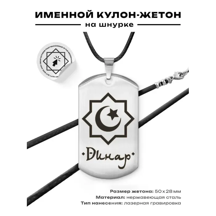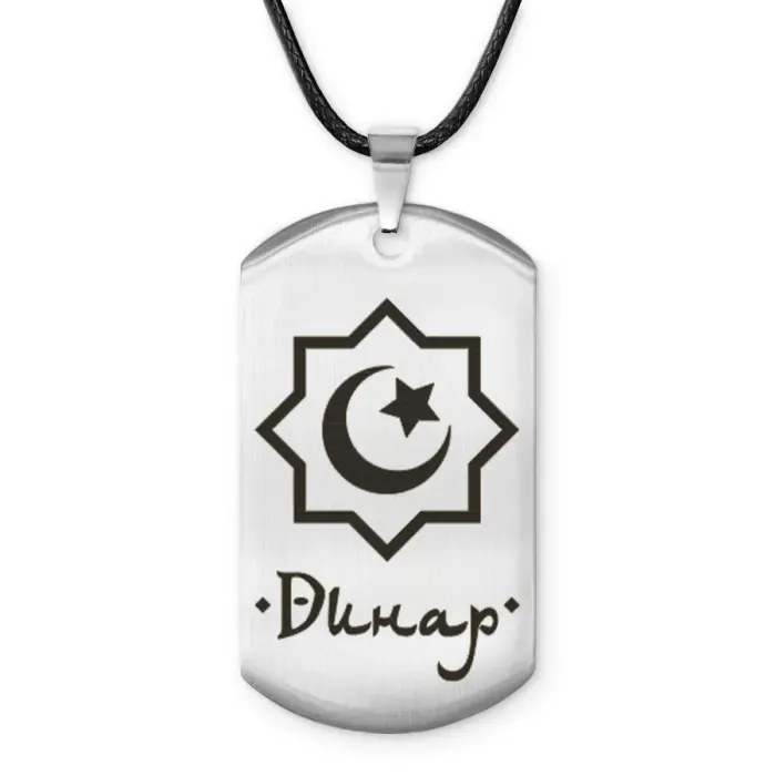 Мусульманский именной жетон из нержавеющей стали с лазерной гравировкой изображения.
