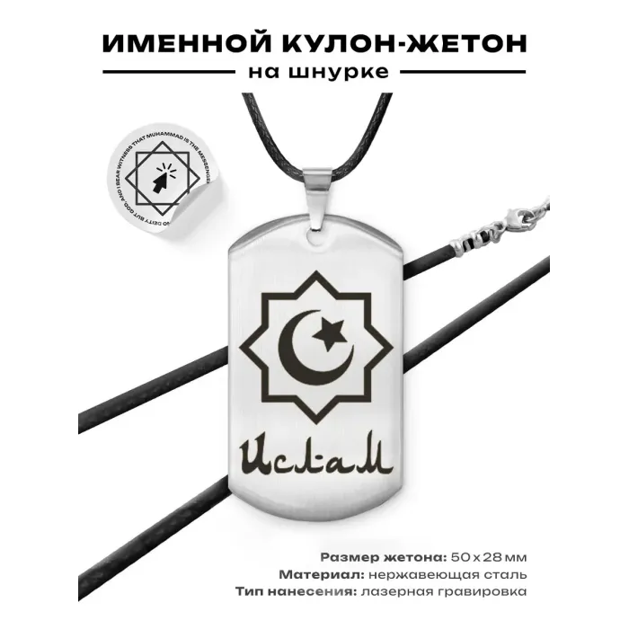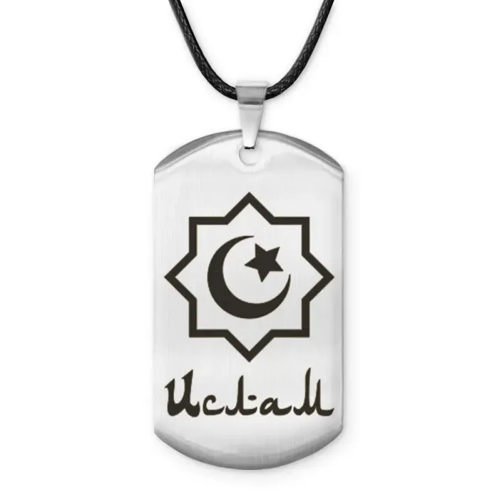 Мусульманский именной жетон из нержавеющей стали с лазерной гравировкой.