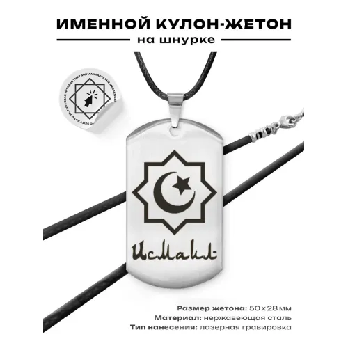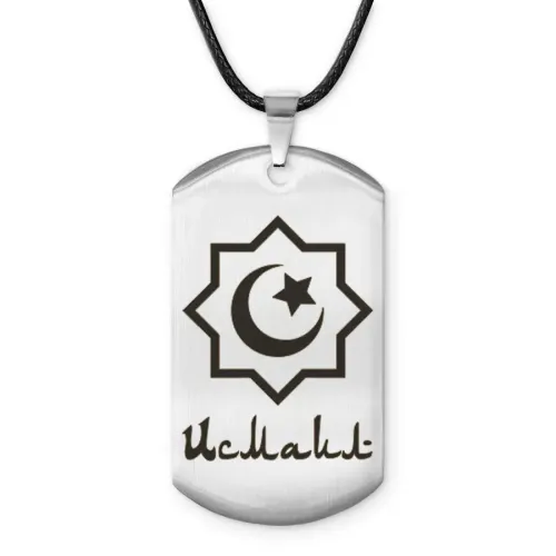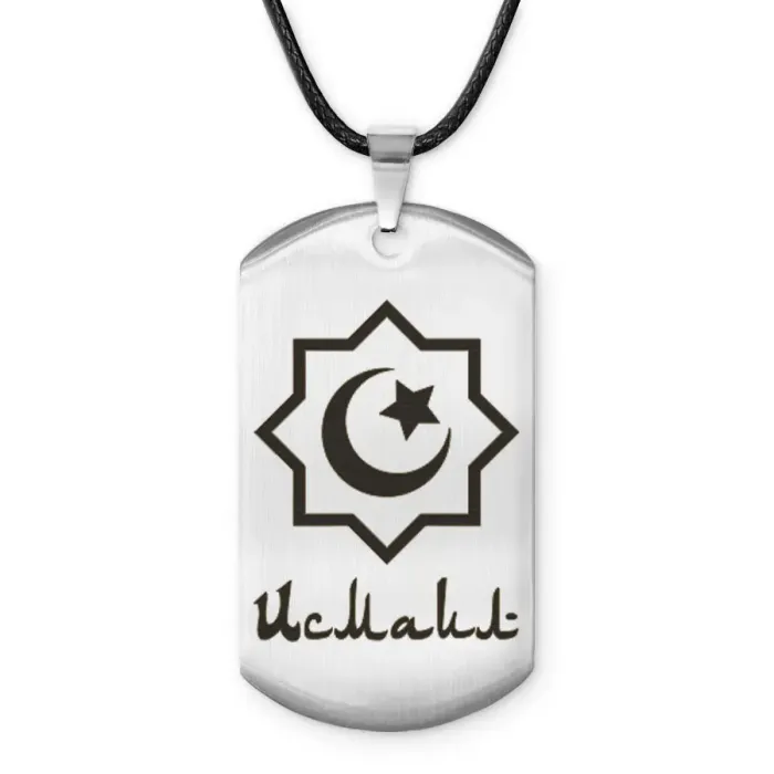 Мусульманский именной жетон Исмаил — амулет из полированной нержавеющей стали с лазерной гравировкой.