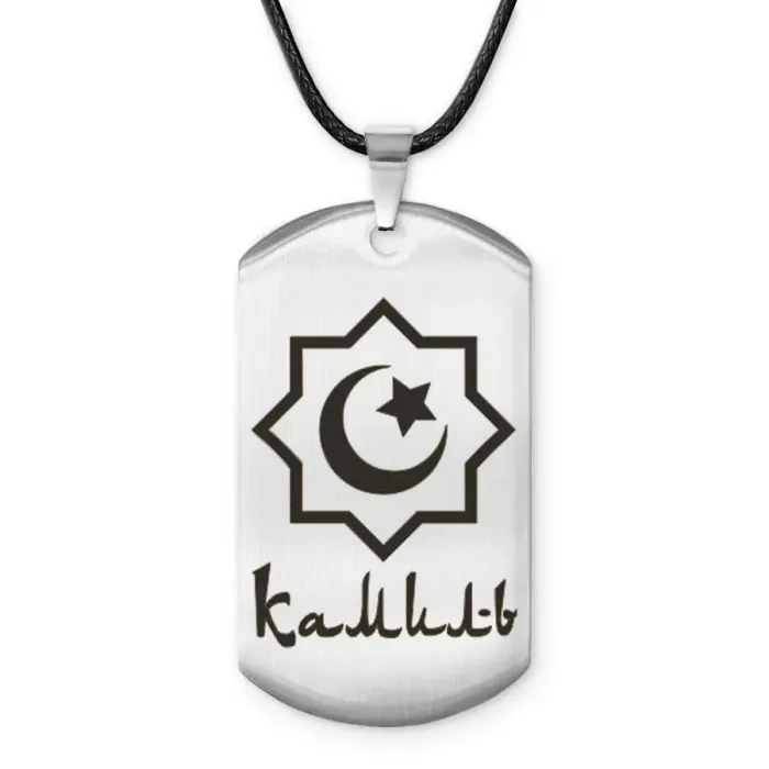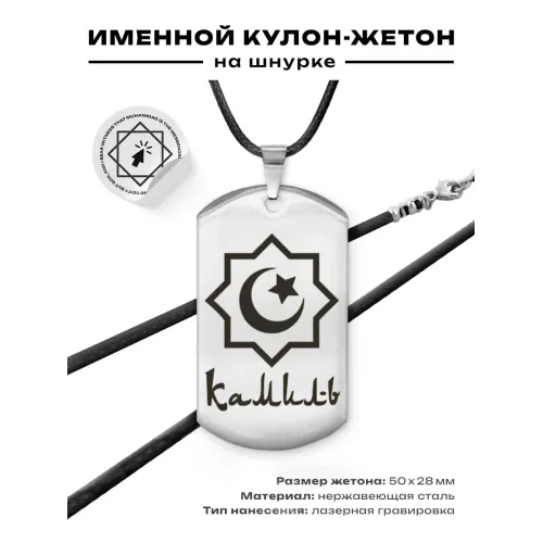 Мусульманский именной жетон Камиль — амулет из нержавеющей стали с лазерной гравировкой на одной стороне.