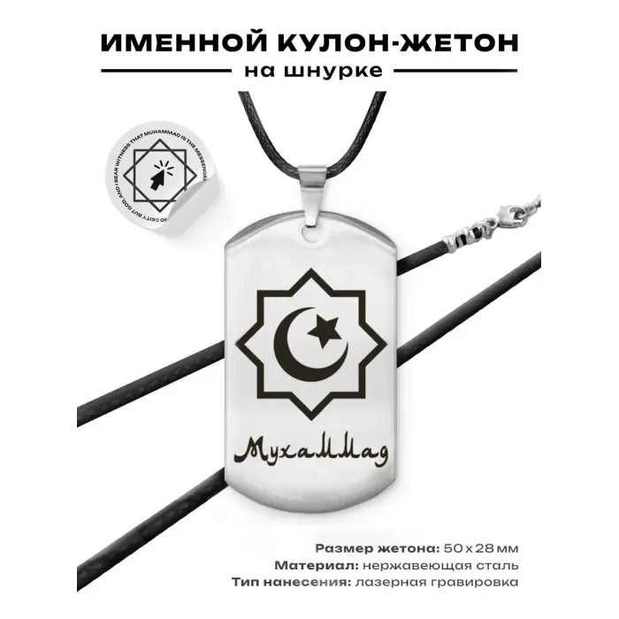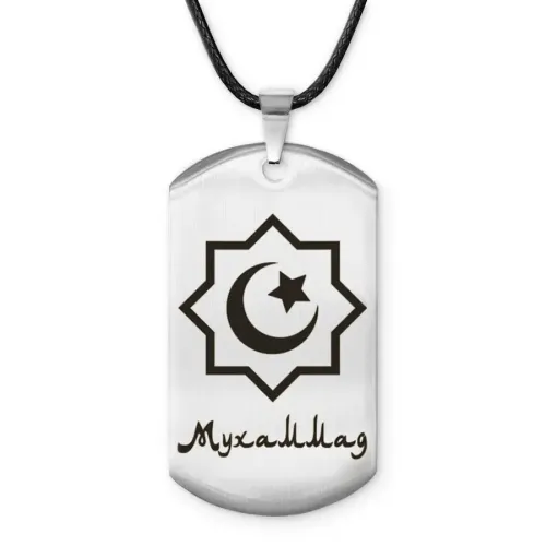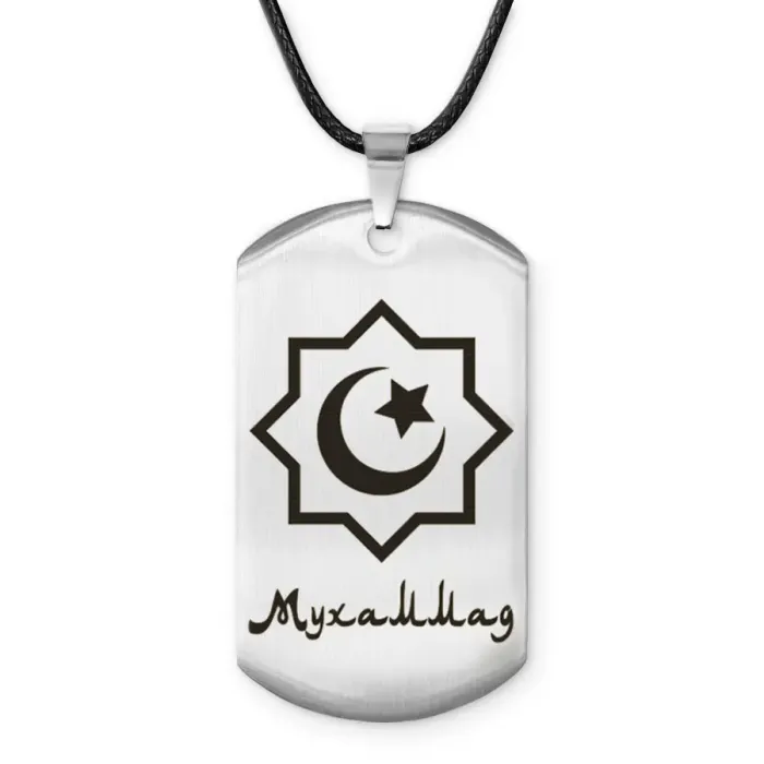 Мусульманский именной жетон Мухаммад — амулет из нержавеющей стали с полированной поверхностью и лазерной гравировкой.