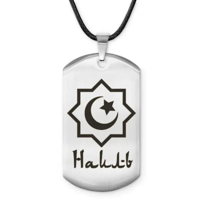 Мусульманский именной жетон из нержавеющей стали с лазерной гравировкой.