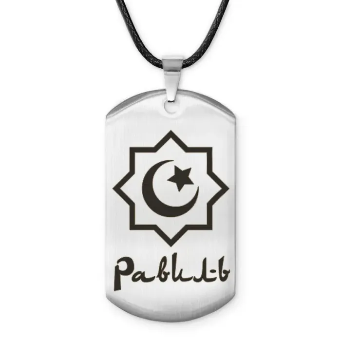 Мусульманский именной жетон из нержавеющей стали с лазерной гравировкой.