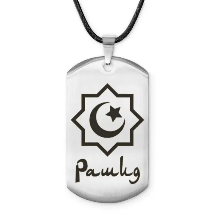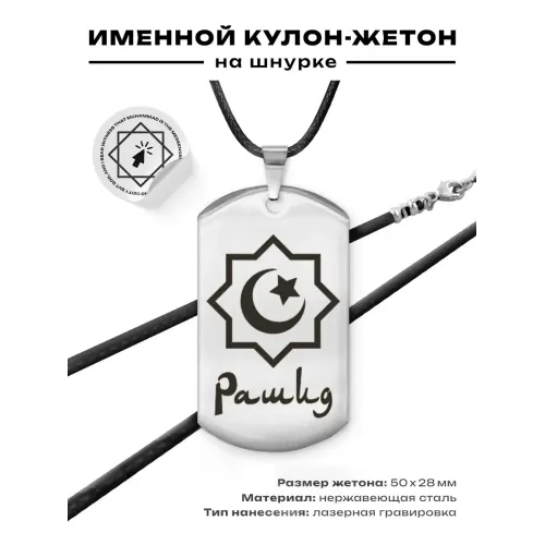 Мусульманский именной жетон Рашид из нержавеющей стали с лазерной гравировкой и зеркальной стороной.