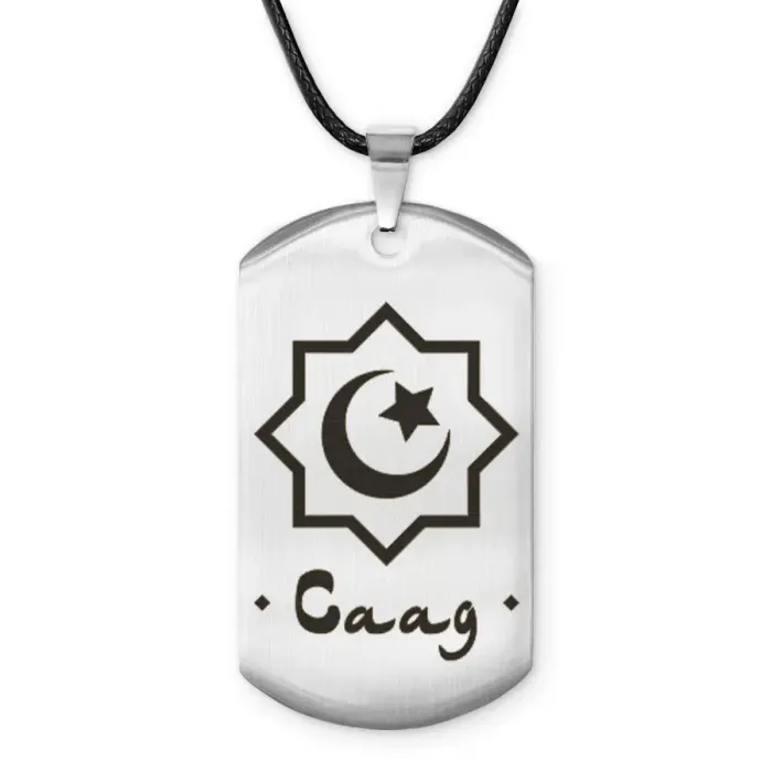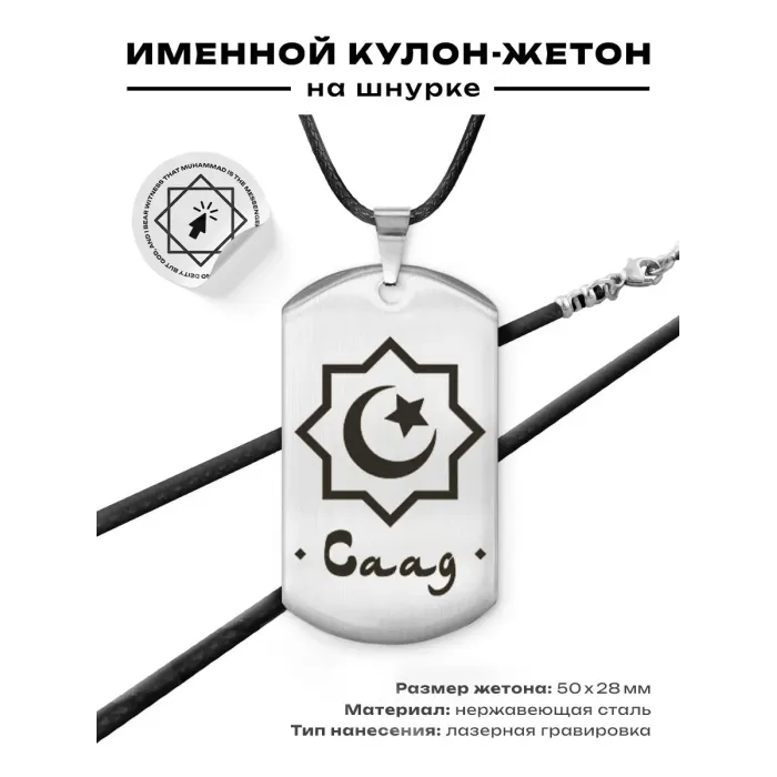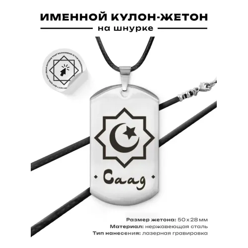 Мусульманский именной жетон Саад — сувенирный амулет из нержавеющей стали с зеркальной полировкой и лазерной гравировкой.