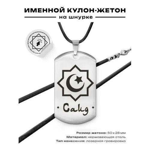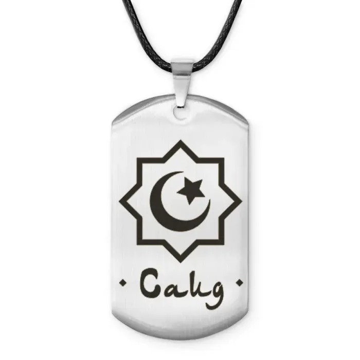 Мусульманский именной жетон из нержавеющей стали с лазерной гравировкой на одной стороне.