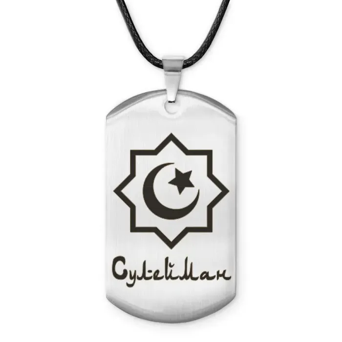 Мусульманский именной жетон Сулейман из нержавеющей стали с лазерной гравировкой.