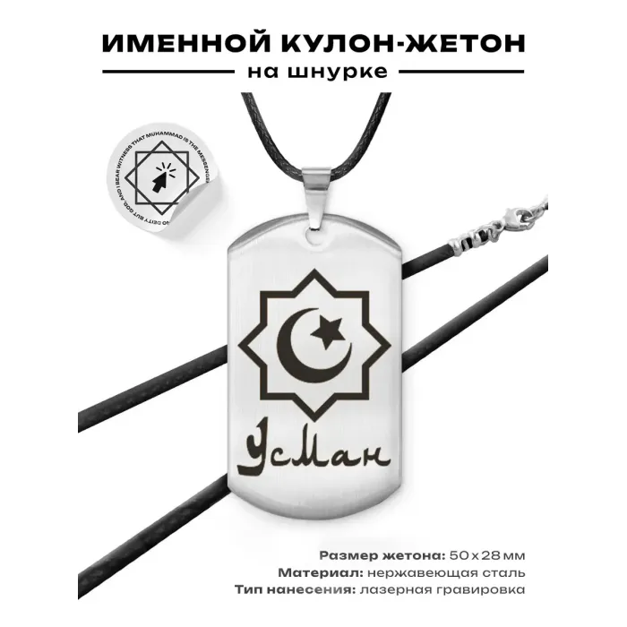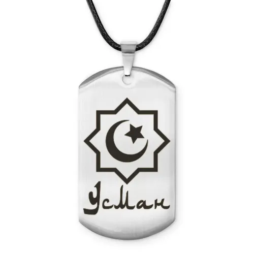 Мусульманский именной жетон Усман — амулет из полированной нержавеющей стали с лазерной гравировкой.