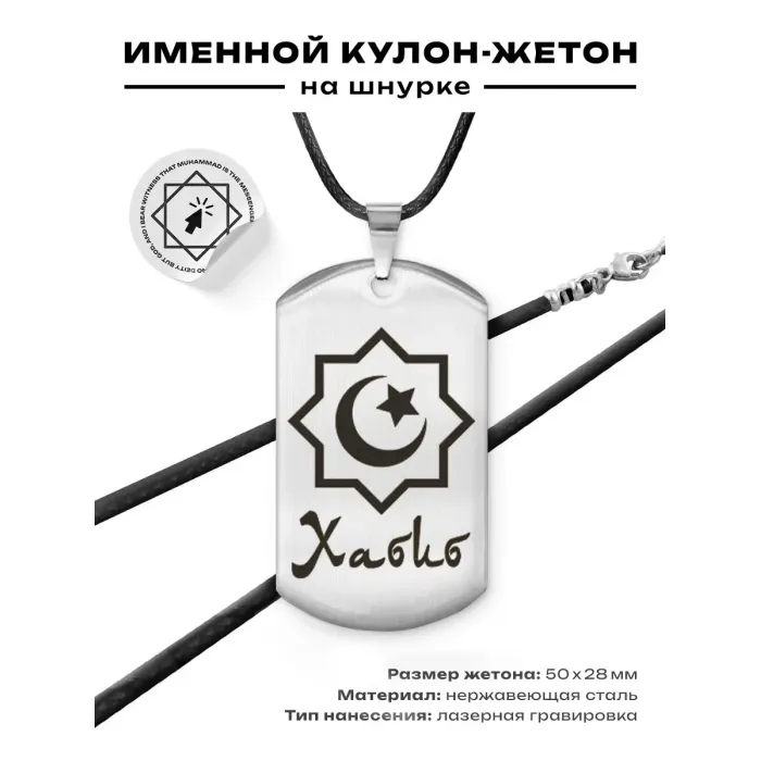 Мусульманский именной жетон из нержавеющей стали с лазерной гравировкой.
