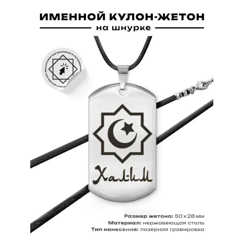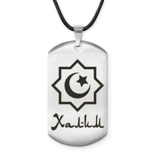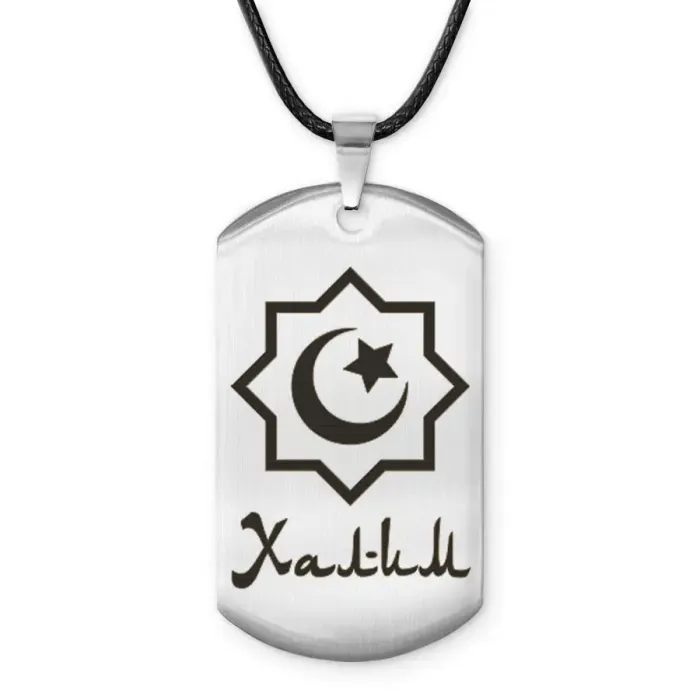 Мусульманский именной жетон Халим — сувенирный амулет из нержавеющей стали с лазерной гравировкой.