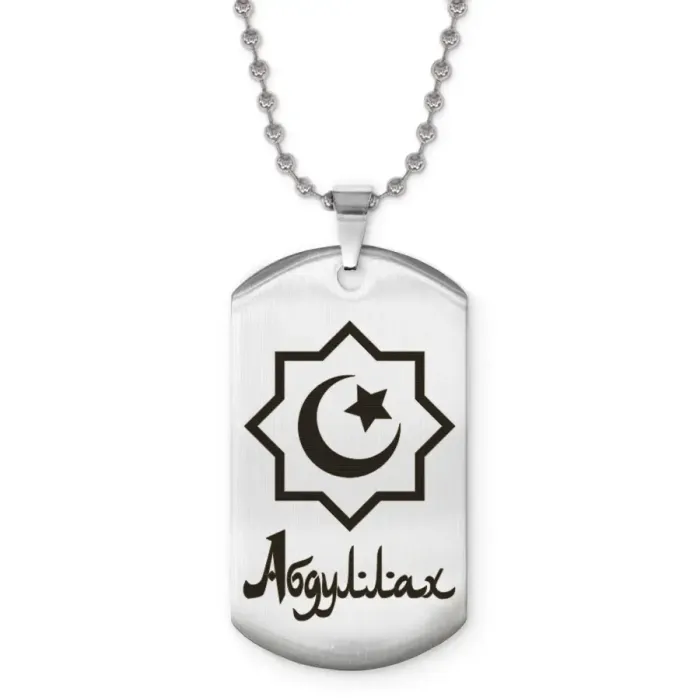 Именной кулон «Абдуллах» — сувенирный аксессуар из нержавеющей стали с лазерной гравировкой.