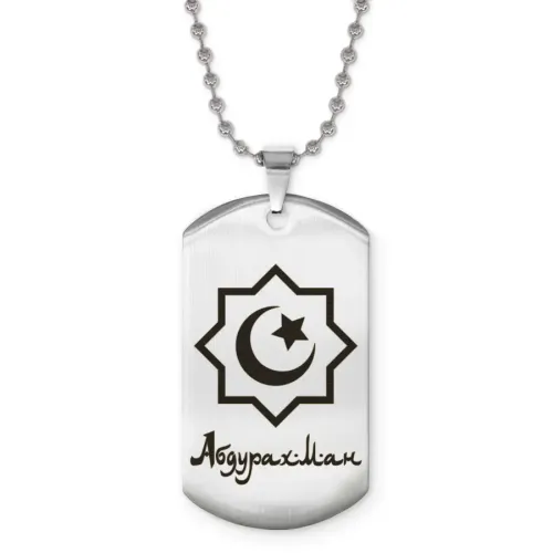Именной кулон «Абдурахман» — мусульманский сувенирный аксессуар из нержавеющей стали с зеркальной полировкой и лазерной гравировкой.