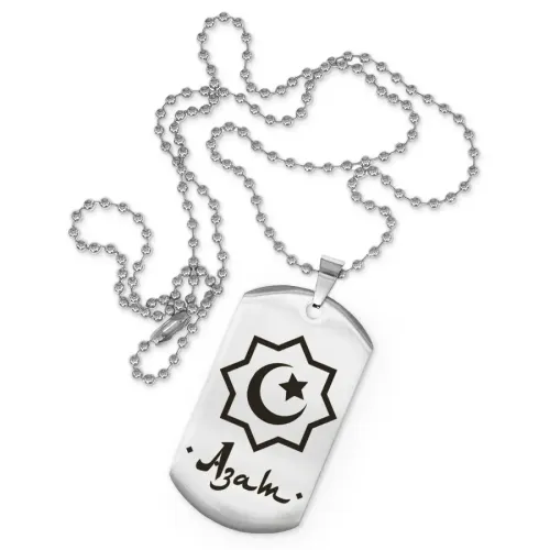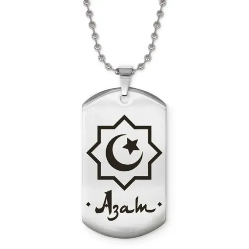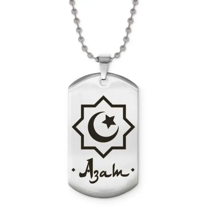 Именной кулон «Азат» — сувенирный аксессуар из нержавеющей стали с лазерной гравировкой.