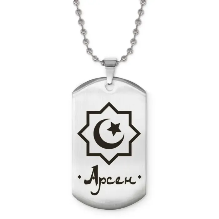 Мусульманский именной кулон из нержавеющей стали с лазерной гравировкой.