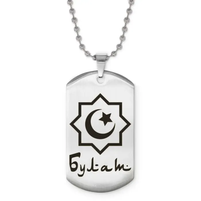 Мусульманский именной кулон из нержавеющей стали с лазерной гравировкой изображения на одной стороне.