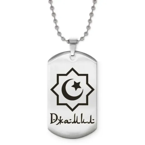 Именной кулон из нержавеющей стали с лазерной гравировкой изображения и зеркальной полировкой.