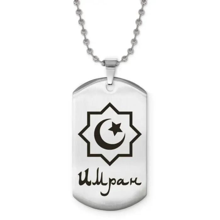 Мусульманский именной кулон Имран — аксессуар из нержавеющей стали с лазерной гравировкой имени на одной стороне.
