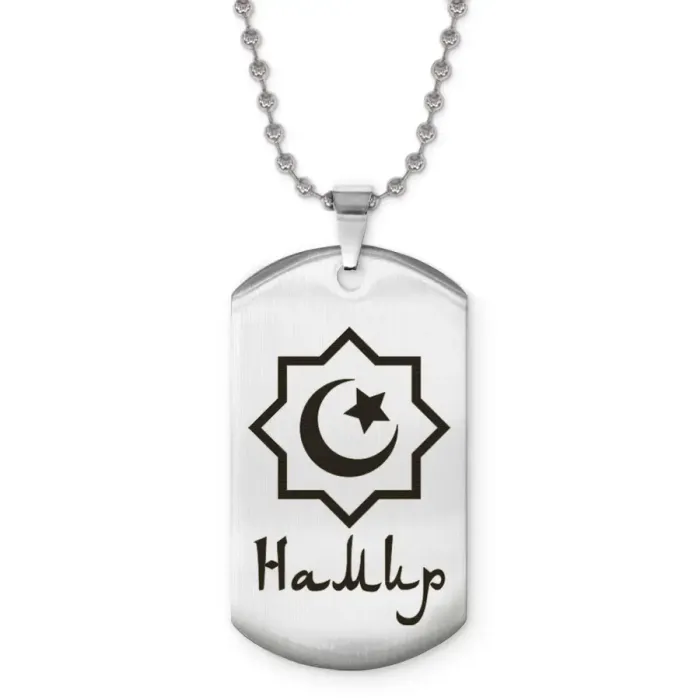 Именной кулон с арабской вязью, изготовленный из нержавеющей стали с лазерной гравировкой.