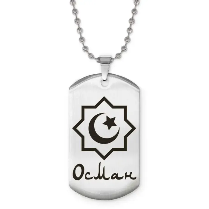 Мусульманский именной кулон из нержавеющей стали с лазерной гравировкой.