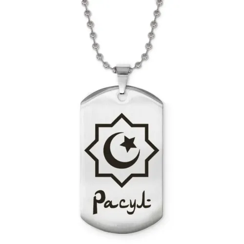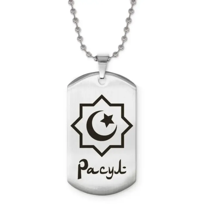 Мусульманский именной кулон Расул — аксессуар из нержавеющей стали с лазерной гравировкой.
