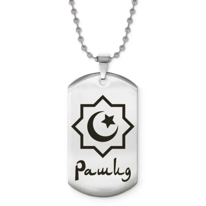 Именной кулон с арабской гравировкой, изготовленный из нержавеющей стали.
