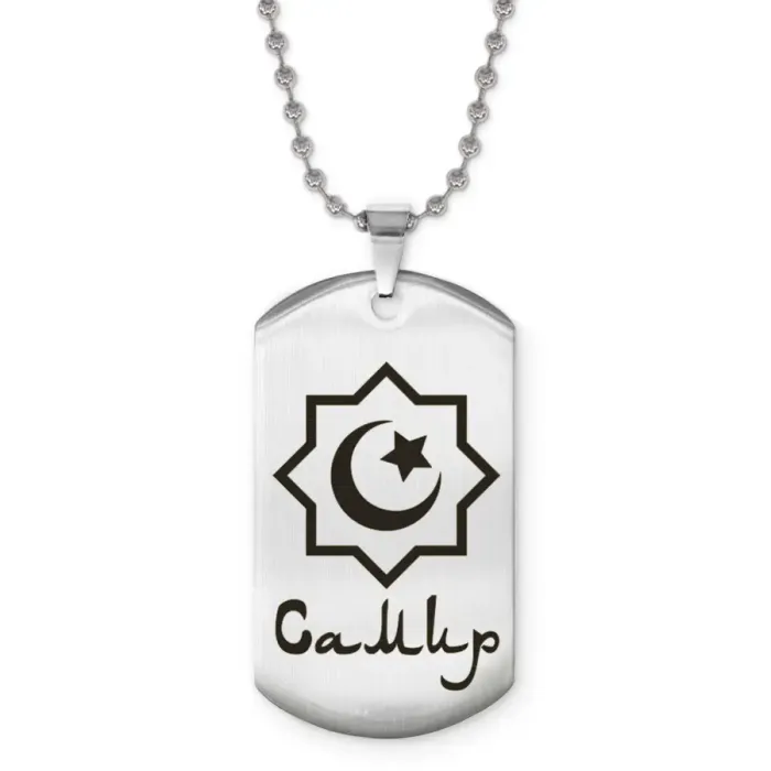 Мусульманский именной кулон из нержавеющей стали с лазерной гравировкой.