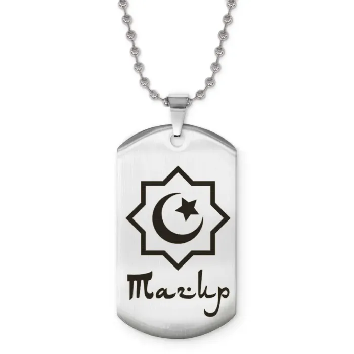 Именной кулон из нержавеющей стали с лазерной гравировкой.