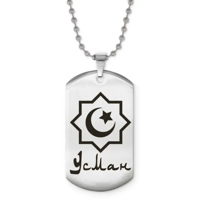 Именной кулон «Усман» — сувенирный аксессуар из нержавеющей стали с лазерной гравировкой.