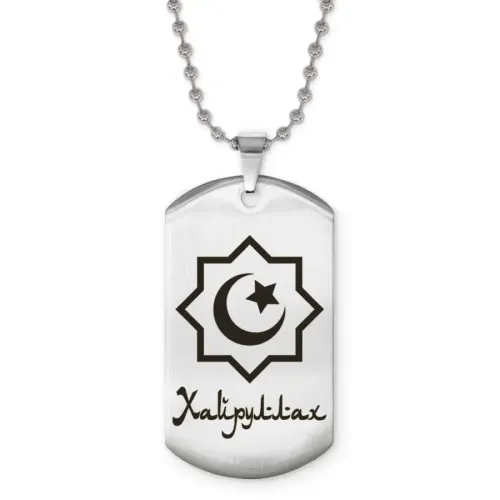 Именной кулон с арабской надписью, изготовленный из нержавеющей стали с зеркальной полировкой и лазерной гравировкой.