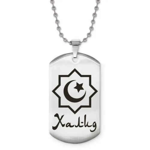 Именной кулон с арабской каллиграфией, изготовленный из нержавеющей стали с зеркальной полировкой и лазерной гравировкой.