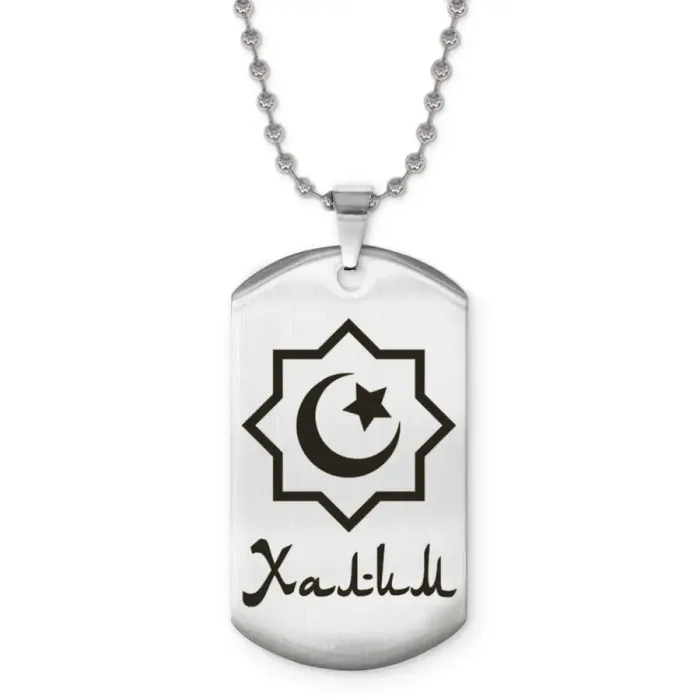 Именной кулон из нержавеющей стали с лазерной гравировкой арабской вязи.