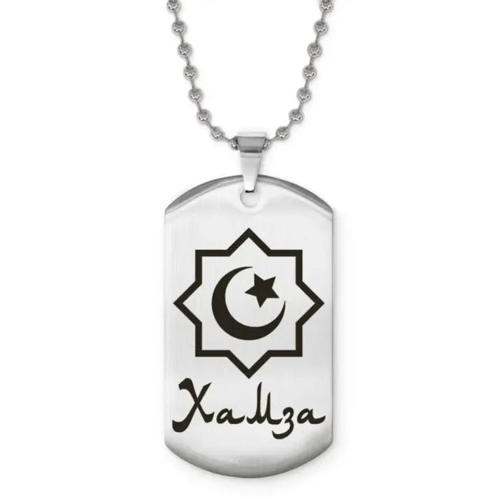 Именной кулон Хамза из нержавеющей стали с лазерной гравировкой изображения.