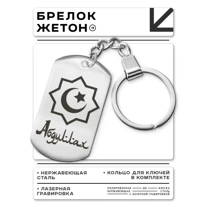 Мусульманский именной брелок-жетон из нержавеющей стали с лазерной гравировкой имени Абдуллах.