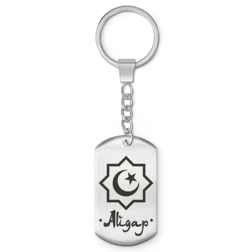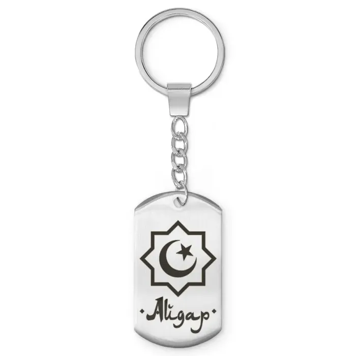 Мусульманский именной брелок-жетон из нержавеющей стали с лазерной гравировкой.