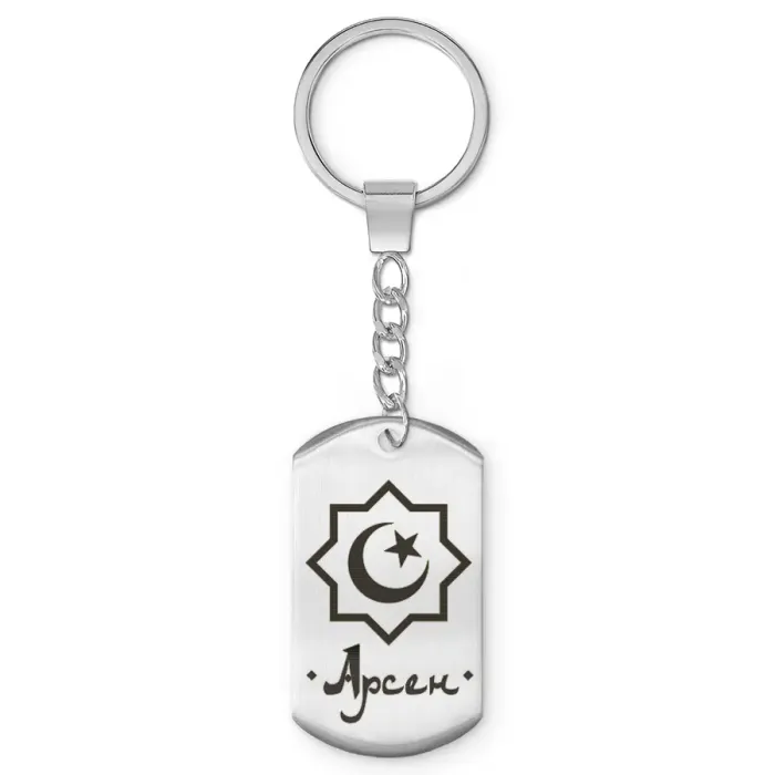 Мусульманский именной брелок-жетон из нержавеющей стали с лазерной гравировкой.