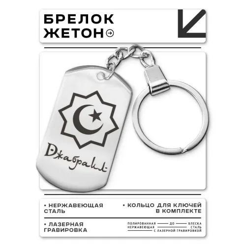 Мусульманский именной брелок-жетон из нержавеющей стали с лазерной гравировкой.