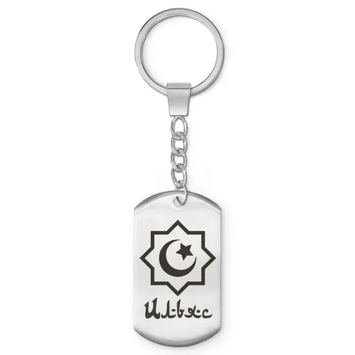 Мусульманский именной брелок-жетон из полированной нержавеющей стали с лазерной гравировкой.