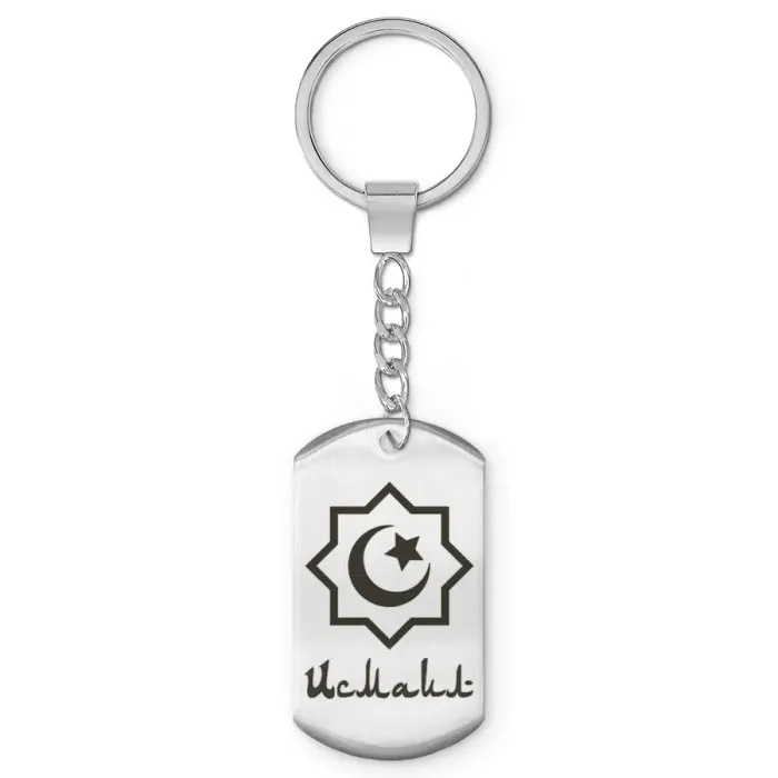 Именной мусульманский брелок-жетон из полированной нержавеющей стали с лазерной гравировкой имени.