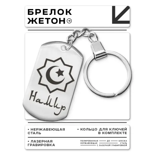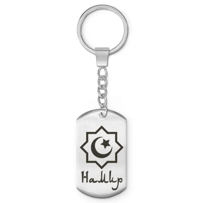 Мусульманский именной брелок из нержавеющей стали с лазерной гравировкой изображения на одной стороне.