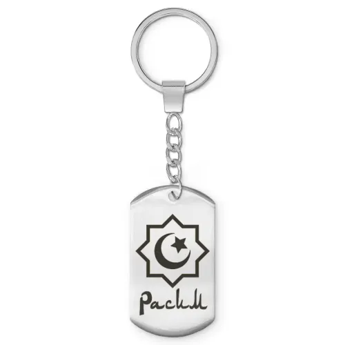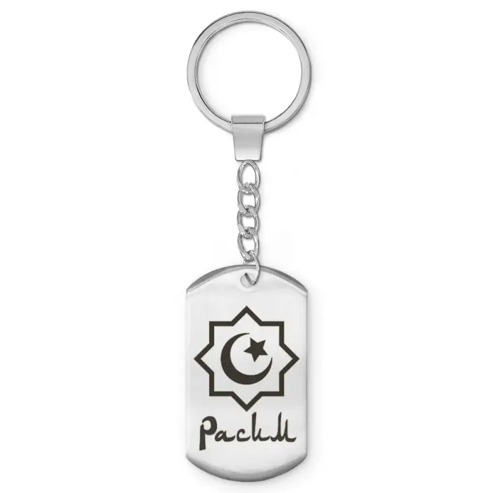 Мусульманский именной брелок-жетон из нержавеющей стали с лазерной гравировкой имени.