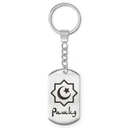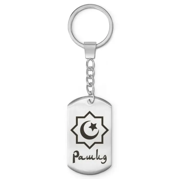 Именной брелок из нержавеющей стали с зеркальной полировкой и лазерной гравировкой имени.