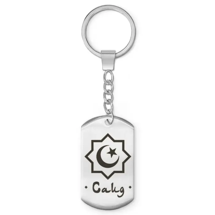 Мусульманский именной брелок-жетон из нержавеющей стали с лазерной гравировкой имени.