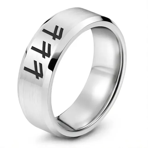 Кольцо-сувенир из нержавеющей стали с лазерной гравировкой славянской формулы.