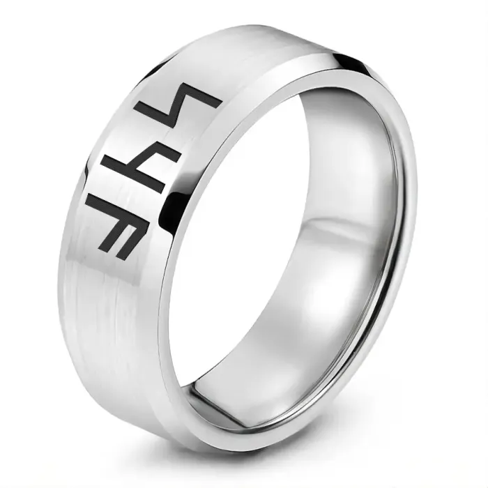 Кольцо из нержавеющей стали с лазерной гравировкой славянской рунической формулы.