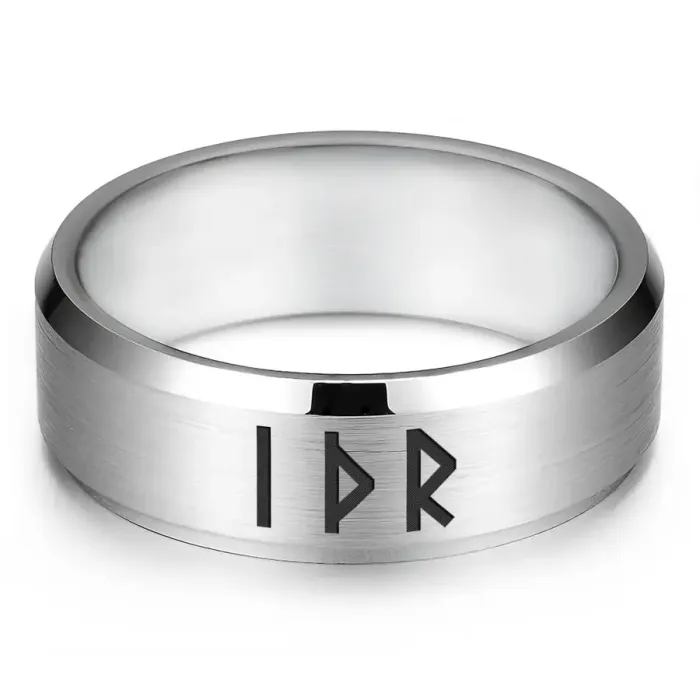 Кольцо со славянской рунической формулой «Материальное благополучие». Изготовлено из нержавеющей стали с лазерной гравировкой.