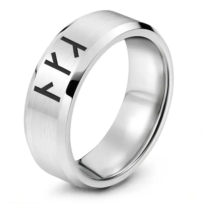 Кольцо из нержавеющей стали с лазерной гравировкой славянской рунической формулы.