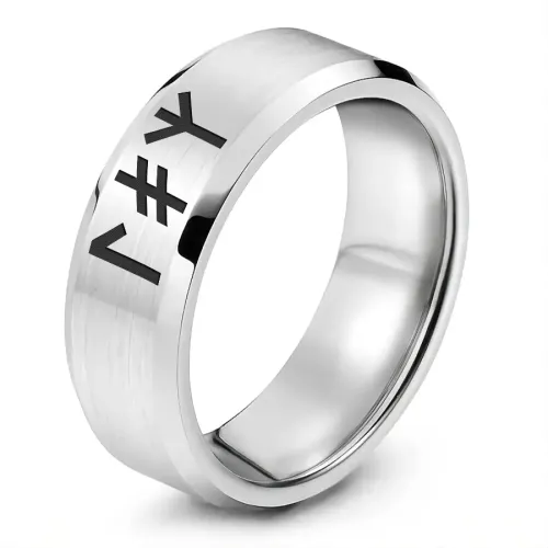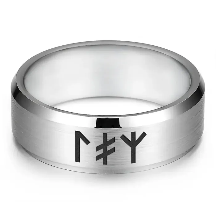 Кольцо из нержавеющей стали с лазерной гравировкой славянской рунической формулы.