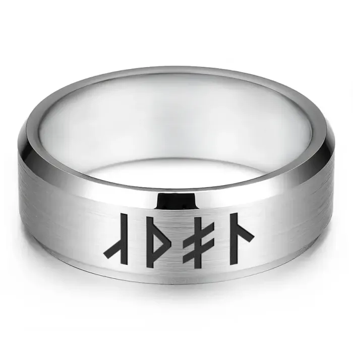 Кольцо из нержавеющей стали с лазерной гравировкой славянской рунической формулы.
