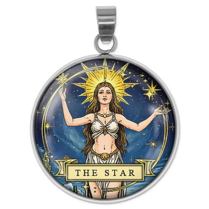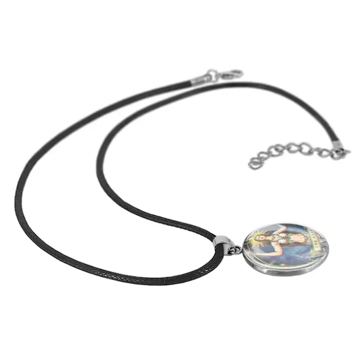 Кулон-амулет из нержавеющей стали с изображением под выпуклой стеклянной линзой.