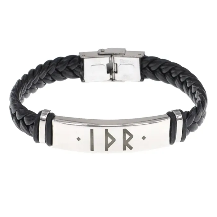 Материал и изготовление: Кожа, нержавеющая сталь. Нанесена гравировка рунической формулы.